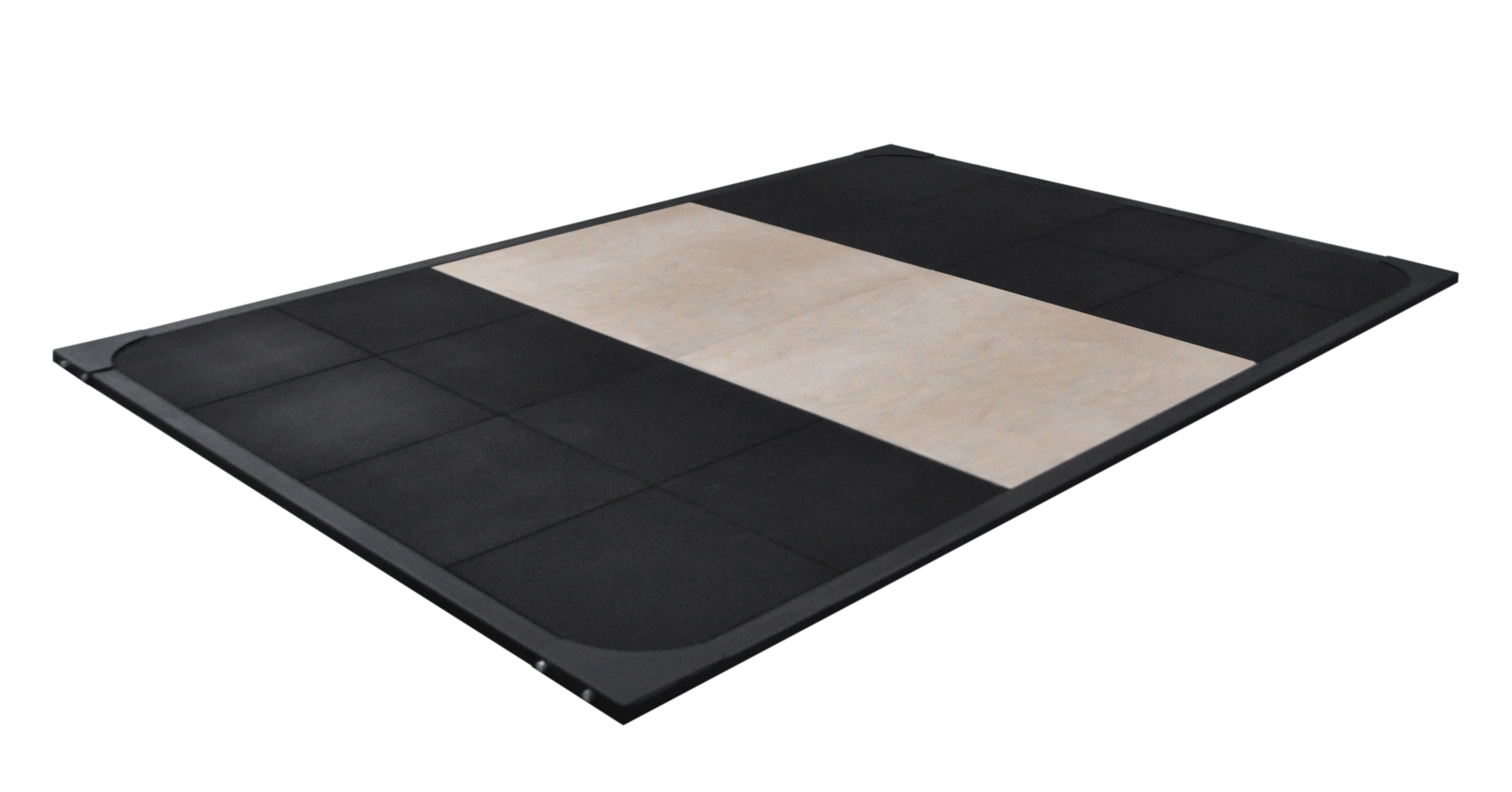 Hela lyftplattformen är 3 meter bred och 2 meter djup och har en mittenskiva i bambu som är två meter lång och 1 meter bred och på varje sida av denna bambu skiva så är det 30mm tjocka stötdämpande gummigolv som är 2 meter långa och 1 meter breda.