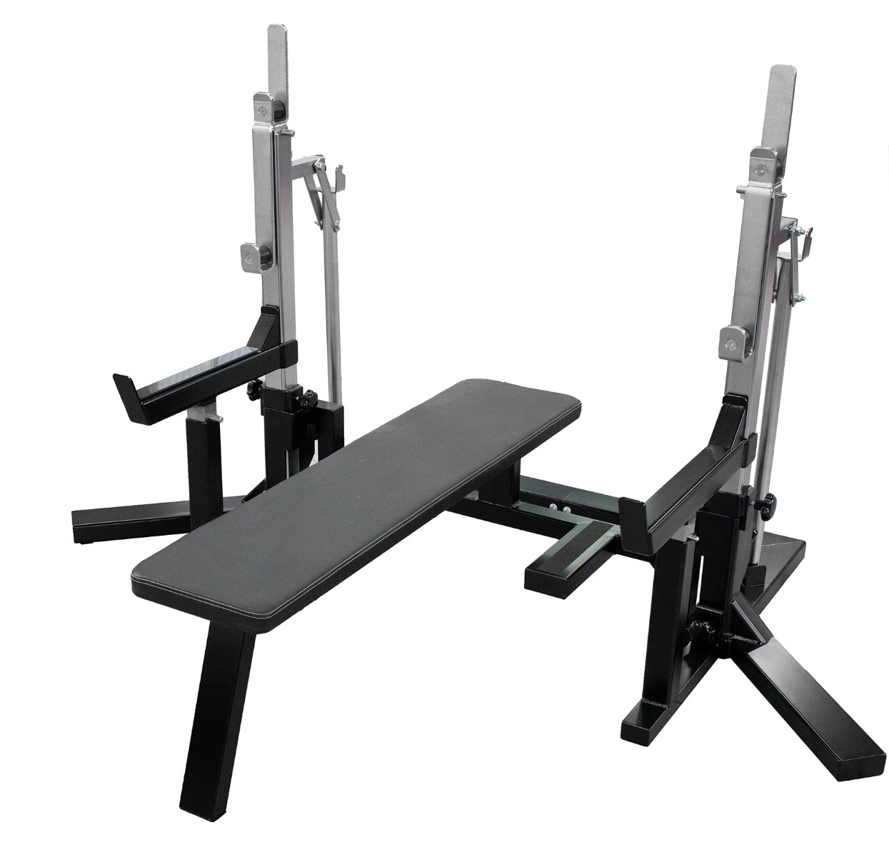 Ett Combo Rack är en extremt bra investering för dig som vill ha en riktigt gedigen ställning som är säker att träna med och som kommer hålla i många, många år framöver. Då man lätt och smidigt sätter fast bänken i ställningen så får man en riktigt stabil liggyta som alltid är centrerad vilket gör att du bara behöver fokusera på att ge allt du har i bänkpressen och tack vare Combo Rackets säkerhetsarmar så kan du alltid känna dig säker under tunga lyft, både vid knäböj och bänkpress där man kan behöva lägga ned stången då man kanske inte klarar lyftet. Ett Combo Rack är även utmärkt för dig som har lite mindre plats då detta är både en robust knäböjsställning samtidigt som det är en riktigt gedigen bänkpress ställning.